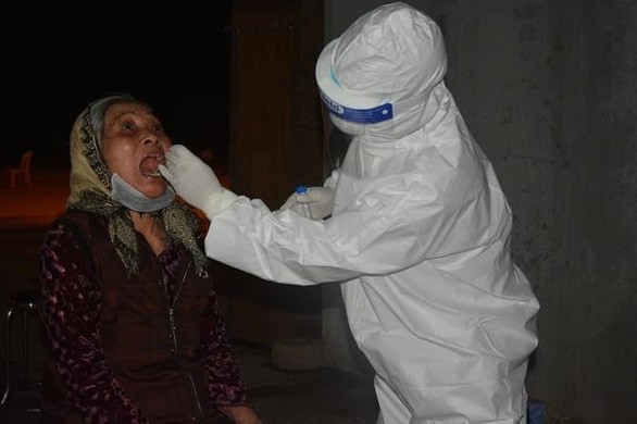 Lấy mẫu xét nghiệm cho người dân thôn Hạ Lôi,